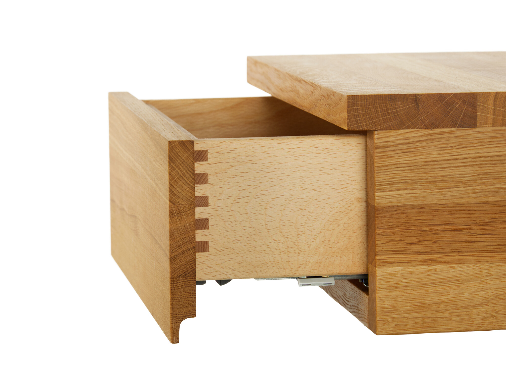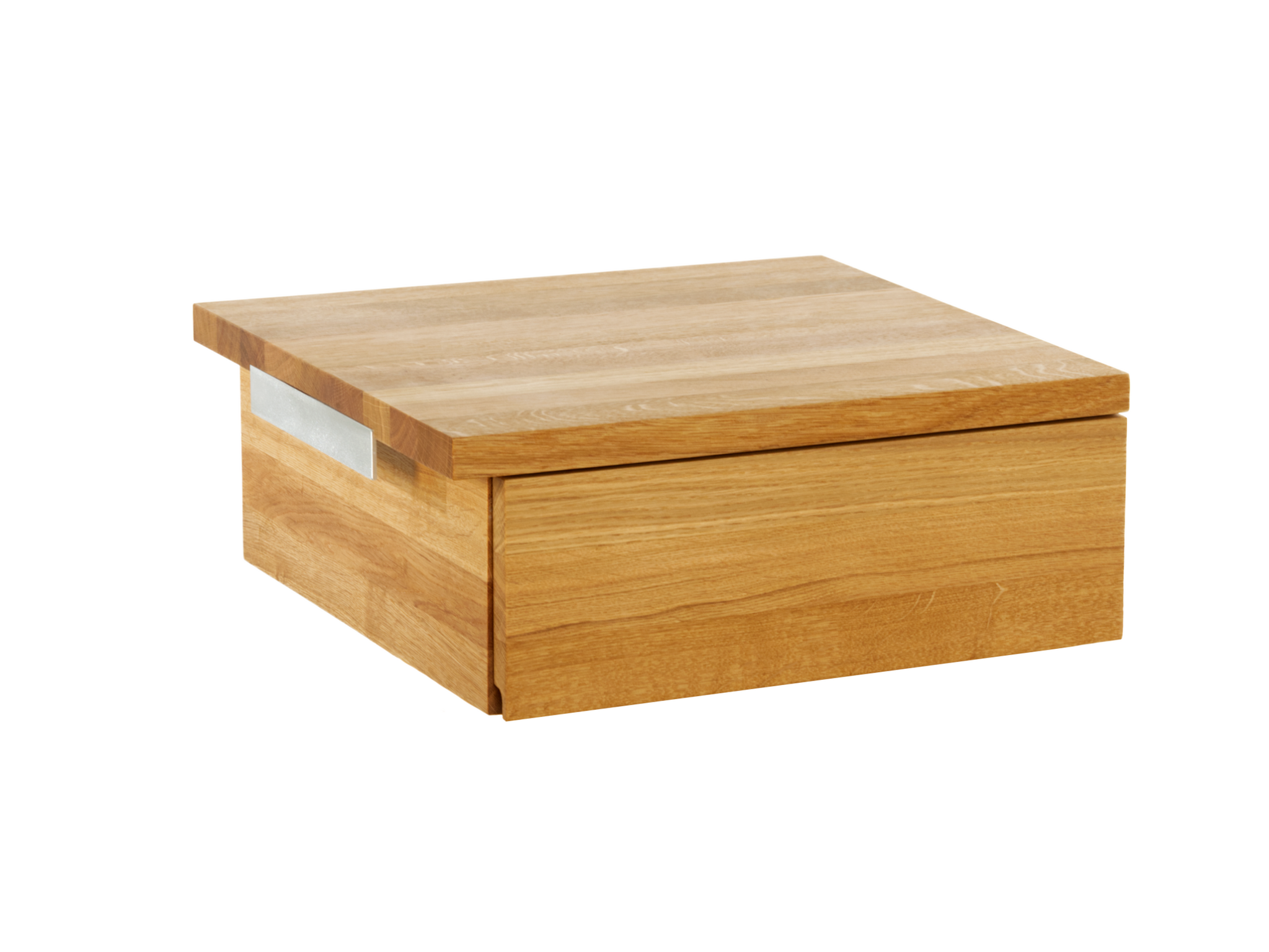 Die Ansteck-Konsole mit Schubfach wird in den Holzarten Buche, Kernbuche, Eiche, Amerikan. Kirschbaum und Amerikan. Nussbaum gefertigt.