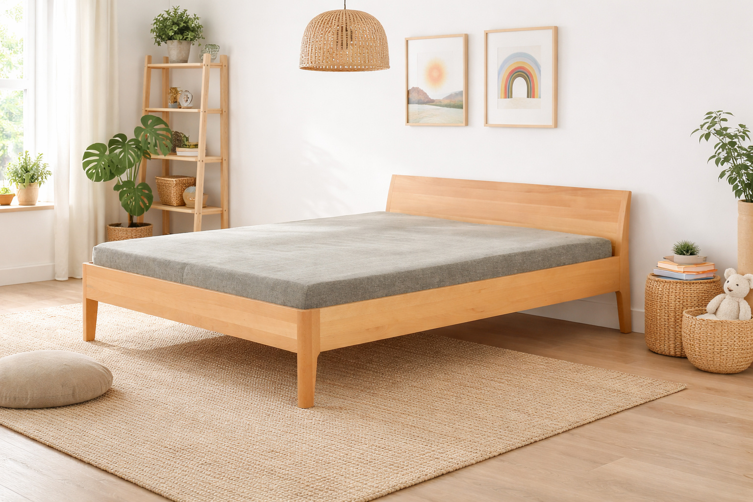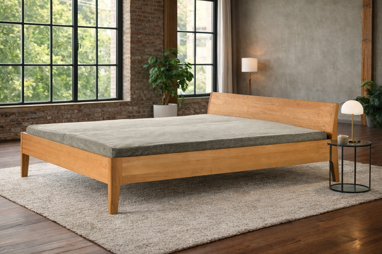 - Typ: Massivholzbett mit Kopfabschluss (niedriges Kopfteil)