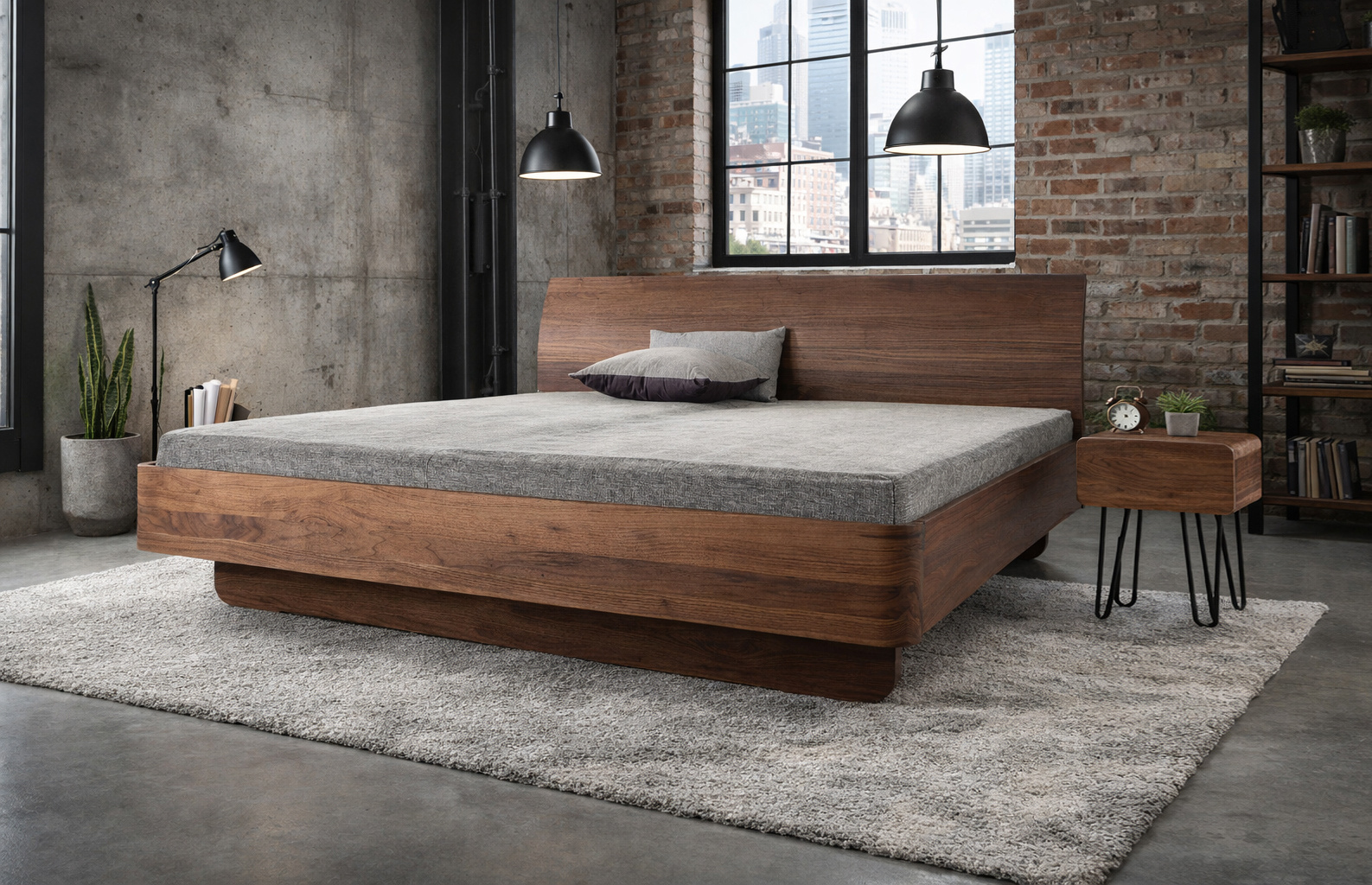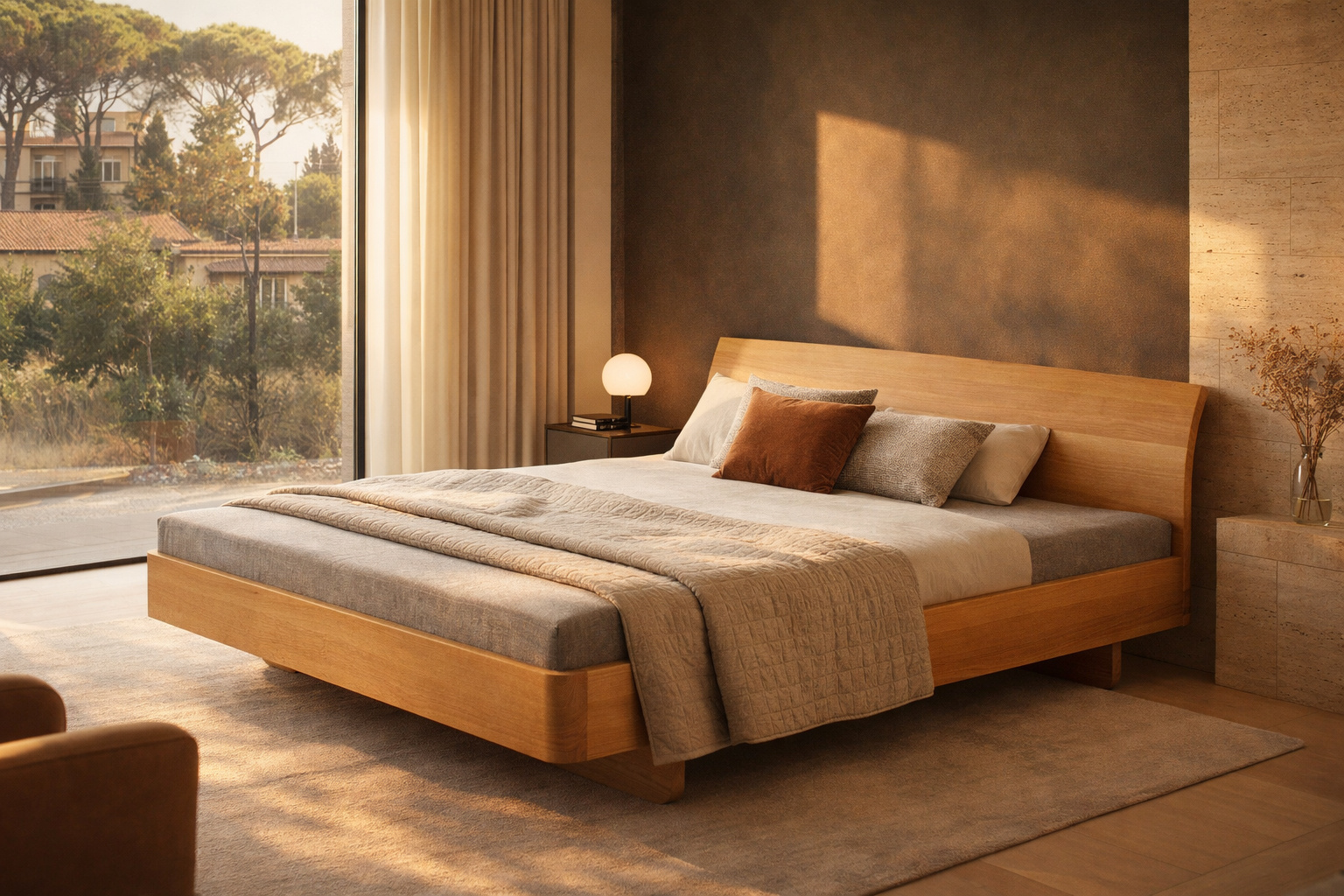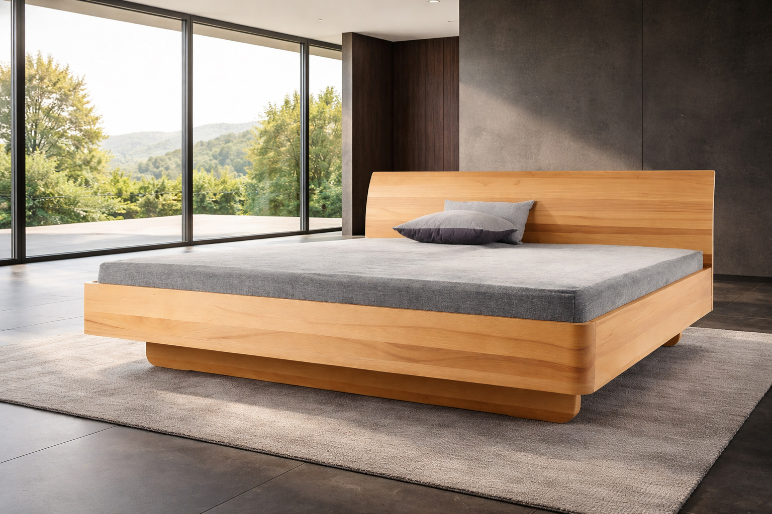 - Typ: Massivholzbett mit ausgebogenem Kopfteil