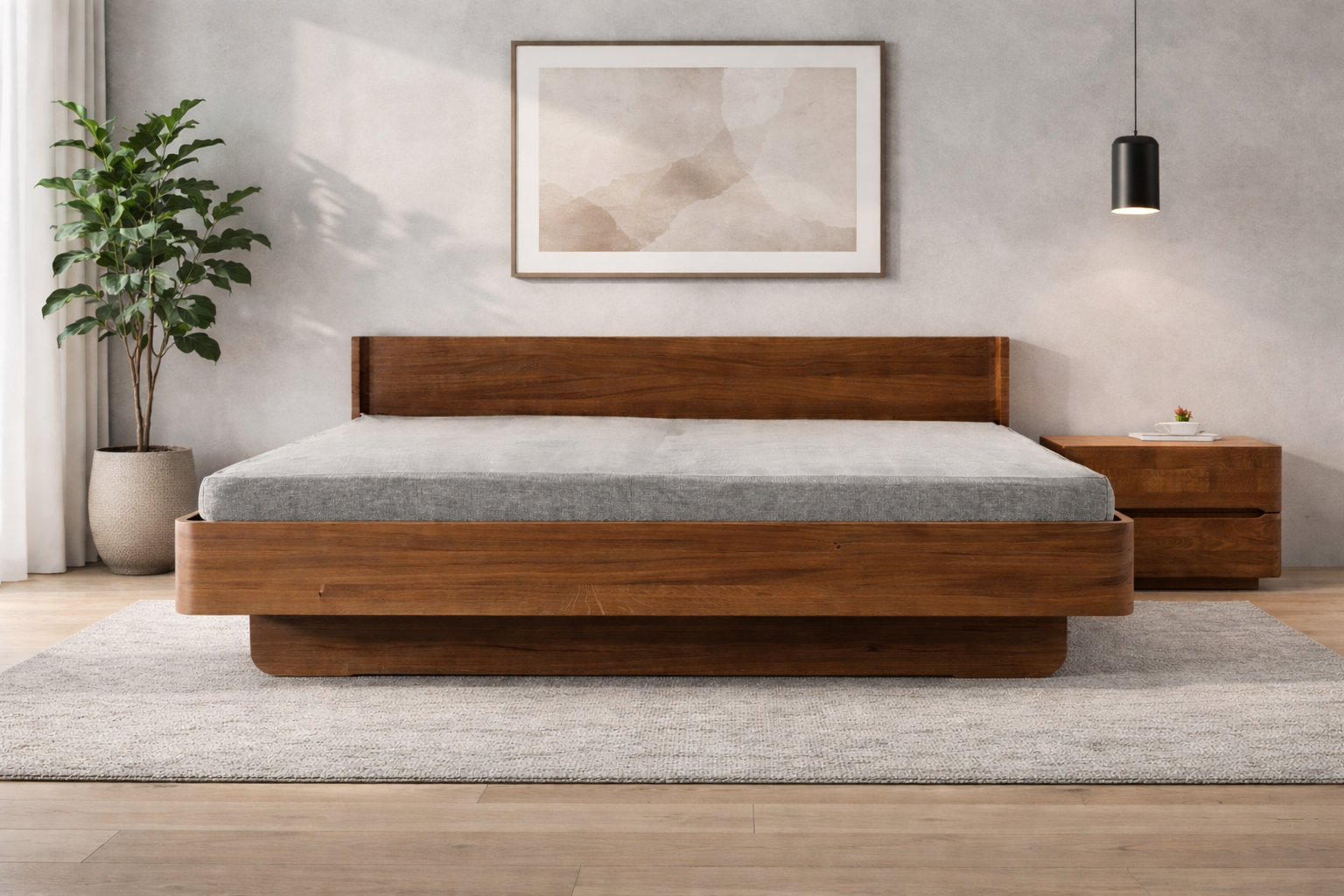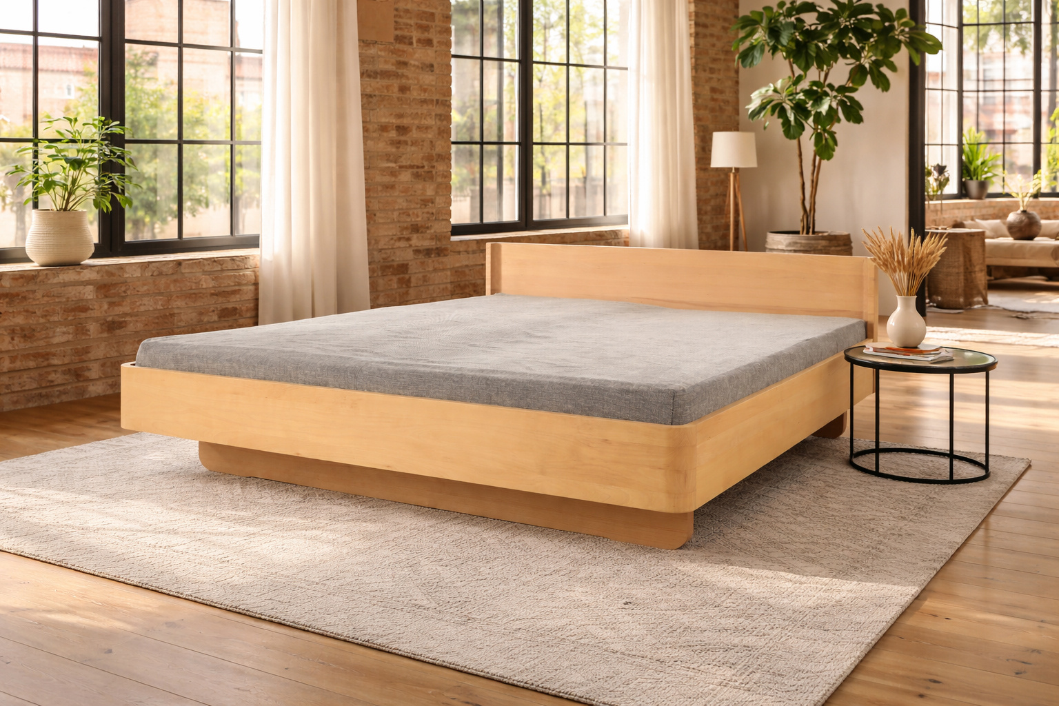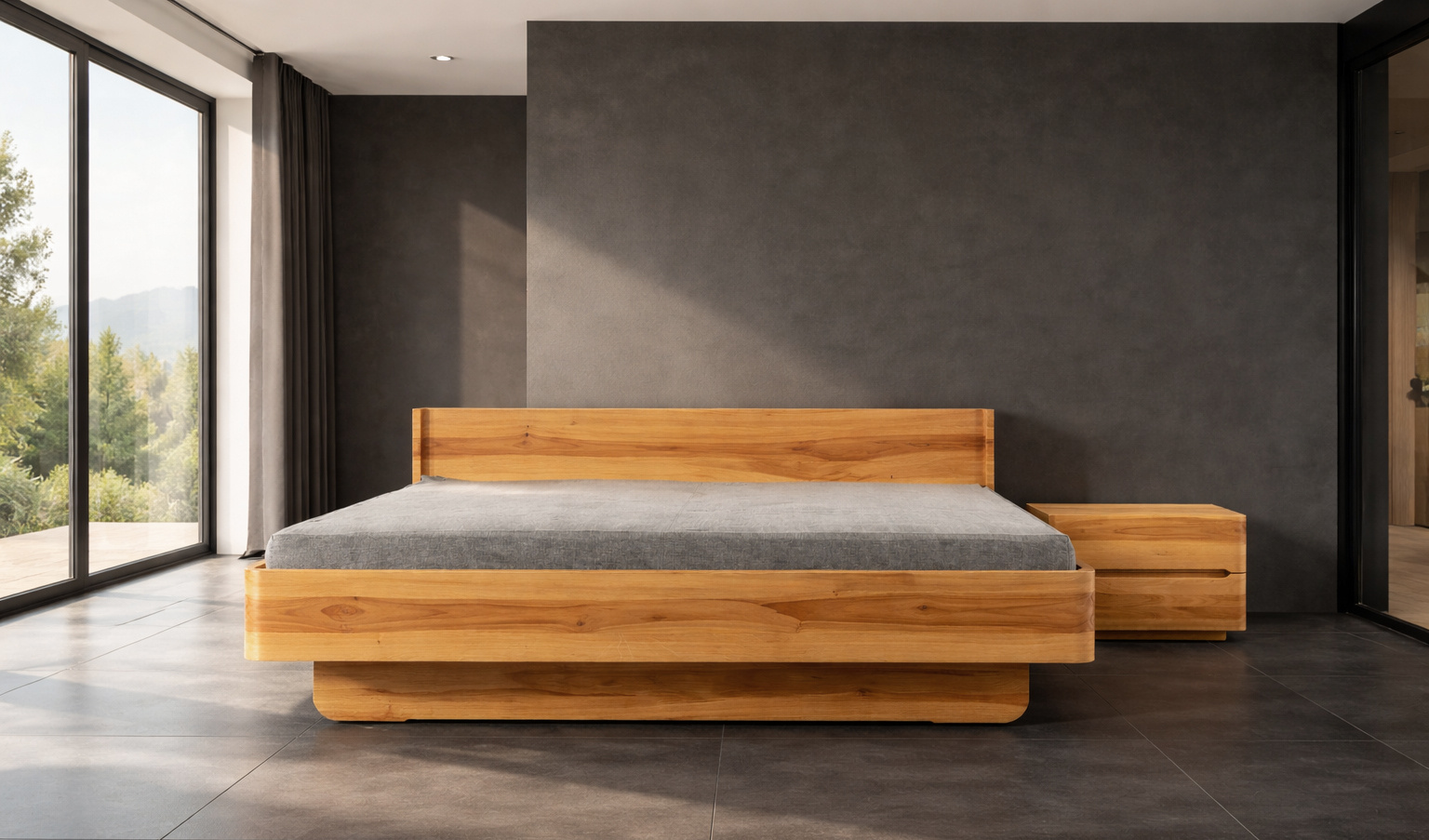- Typ: Massivholzbett mit geradem Kopfteil
