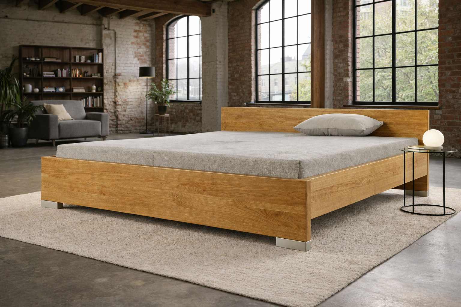- Typ: Massivholzbett mit geradem, senkrechtem Kopfabschluss