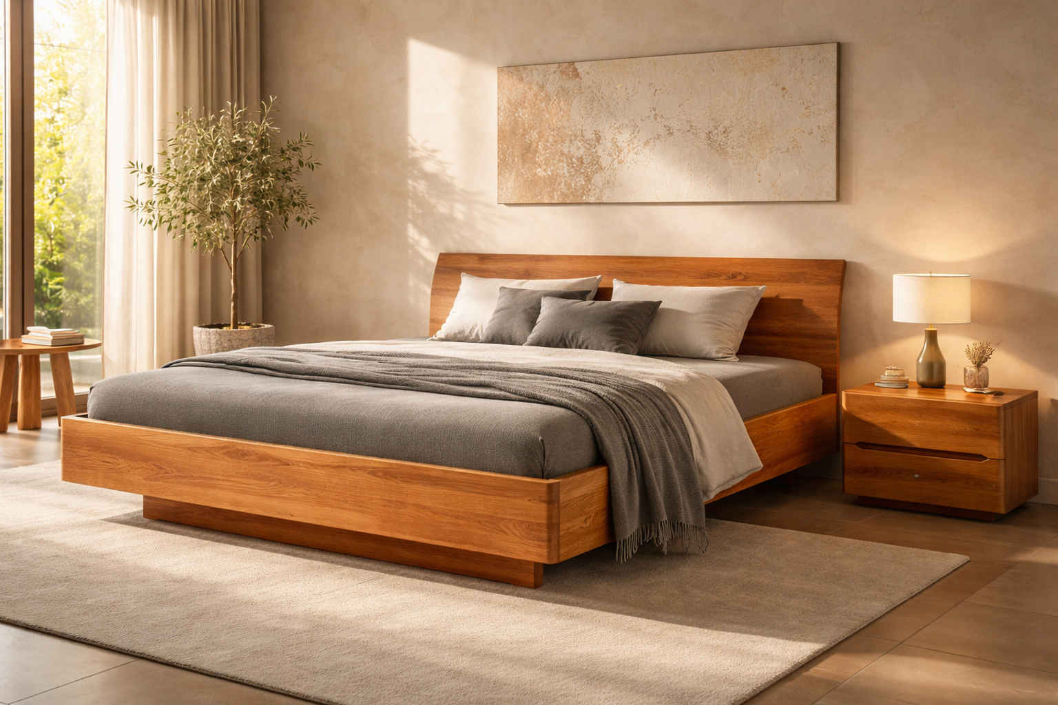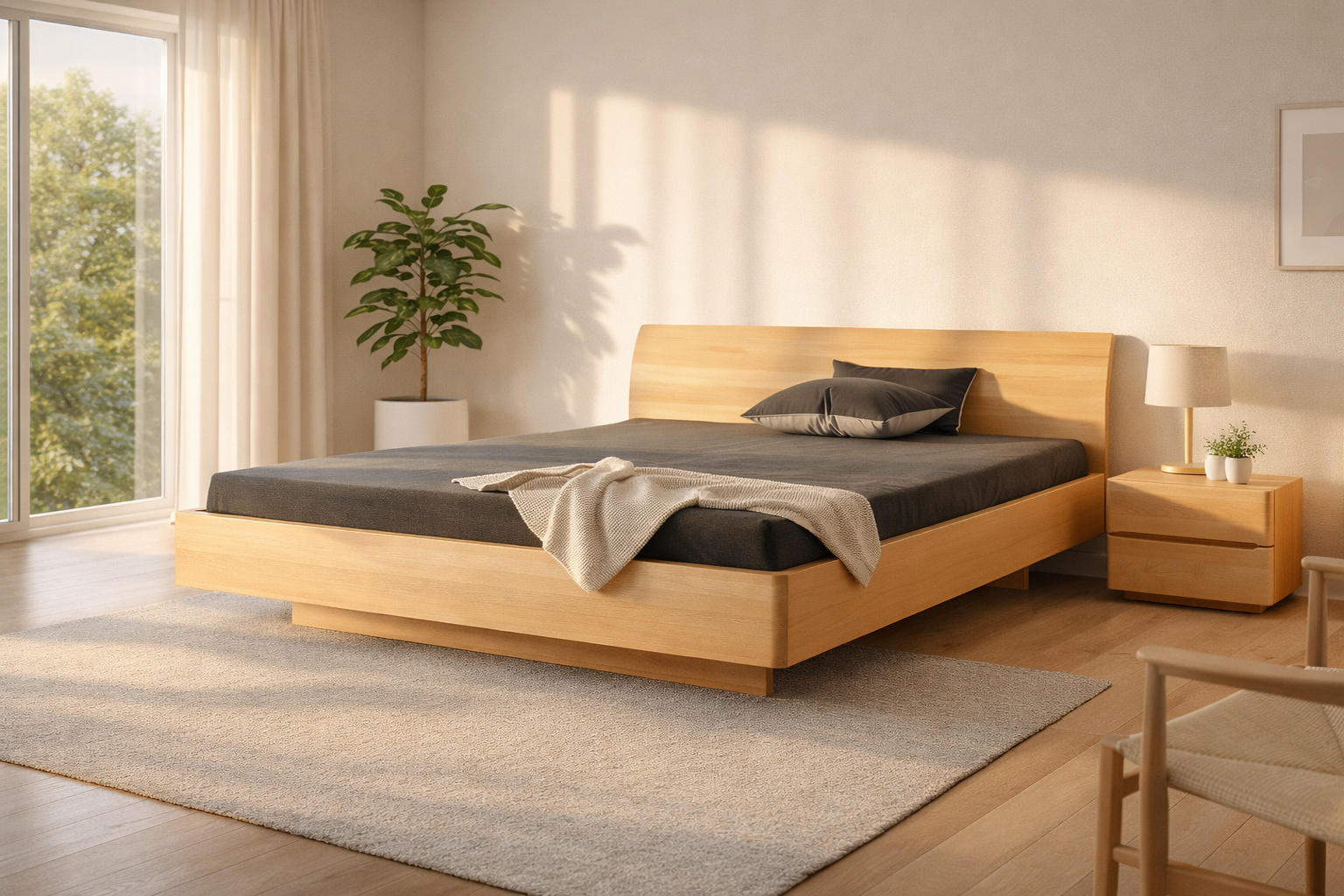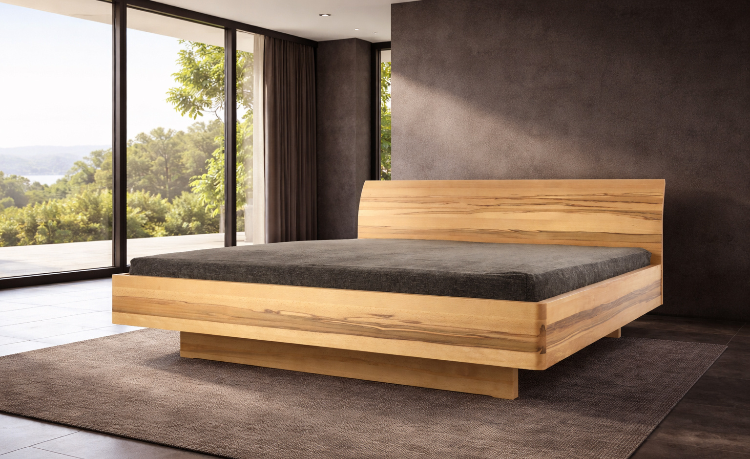 - Typ: Massivholzbett mit ausgebogenem Kopfteil