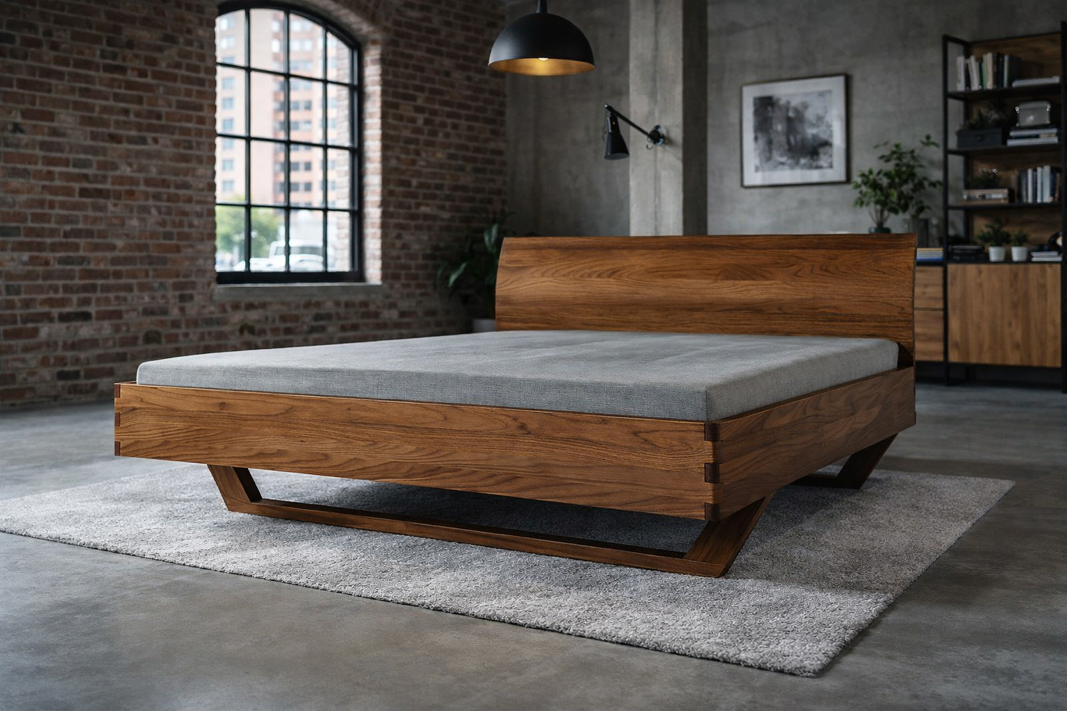 - Typ: Massivholzbett mit ausgebogenem Kopfteil