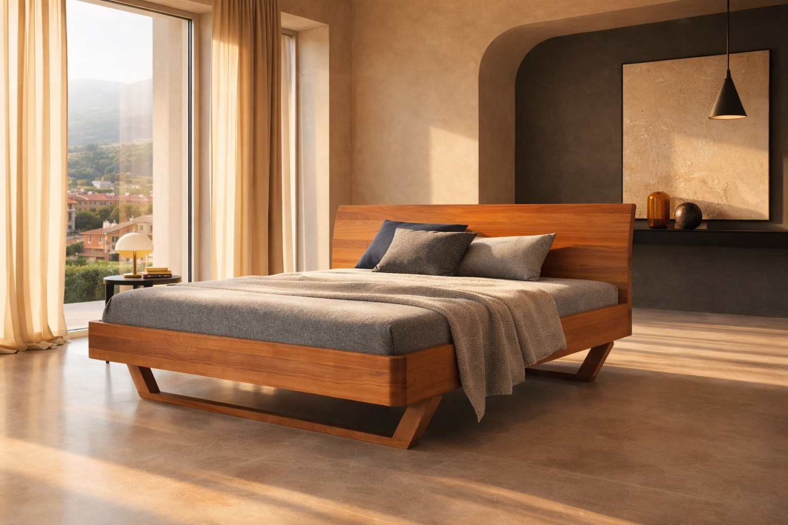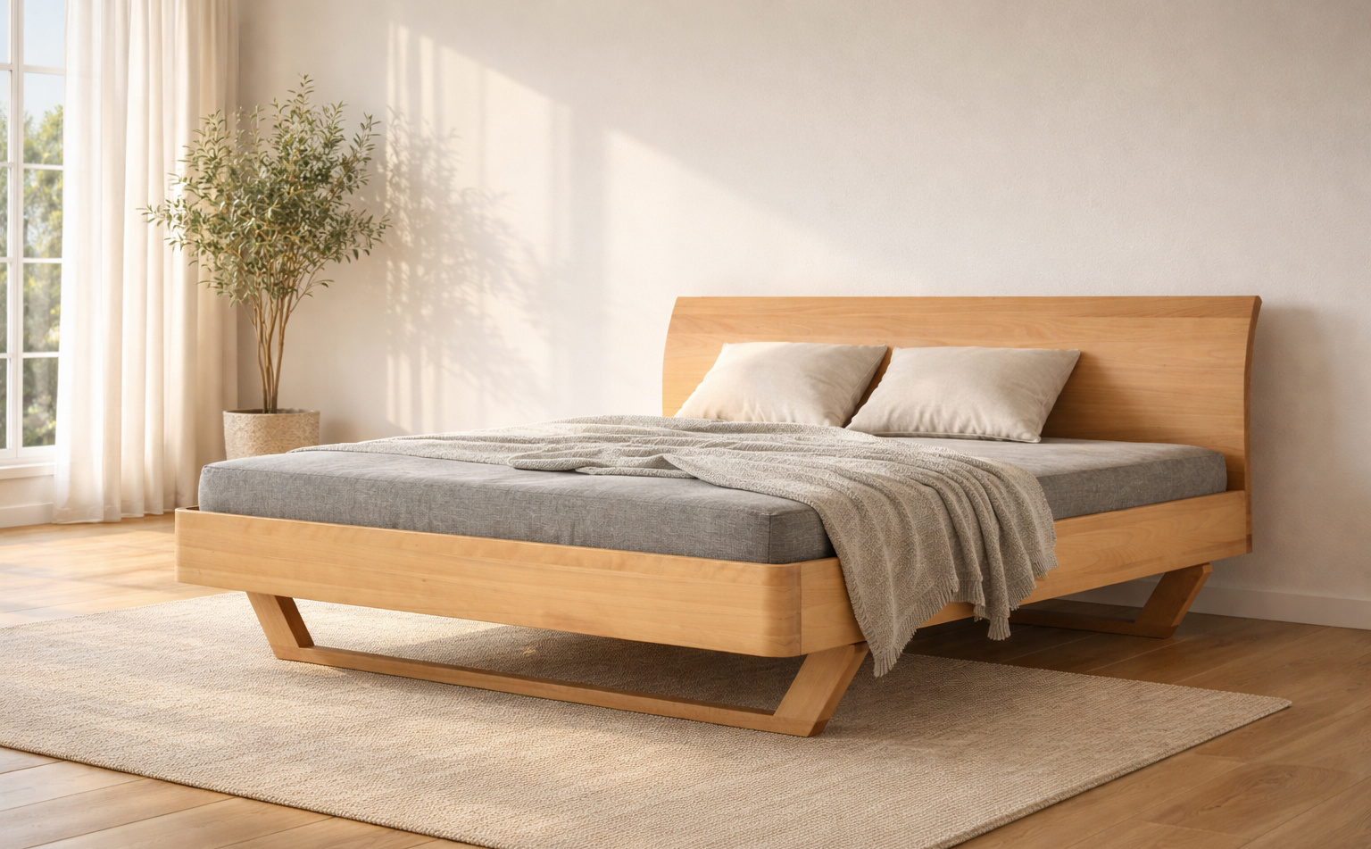 - Typ: Massivholzbett mit ausgebogenem Kopfteil