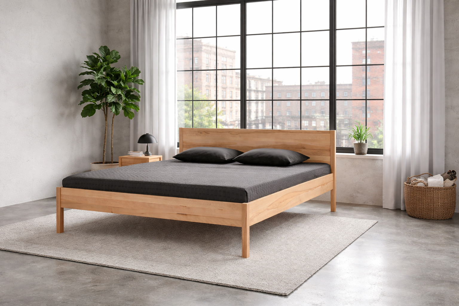 - Typ: Massivholzbett mit geradem, senkrechtem Kopfteil