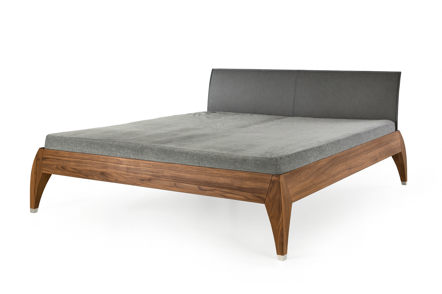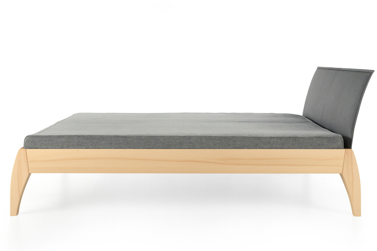 - Typ: Massivholzbett mit elegant ausgebogener Polster-Rückenlehne.