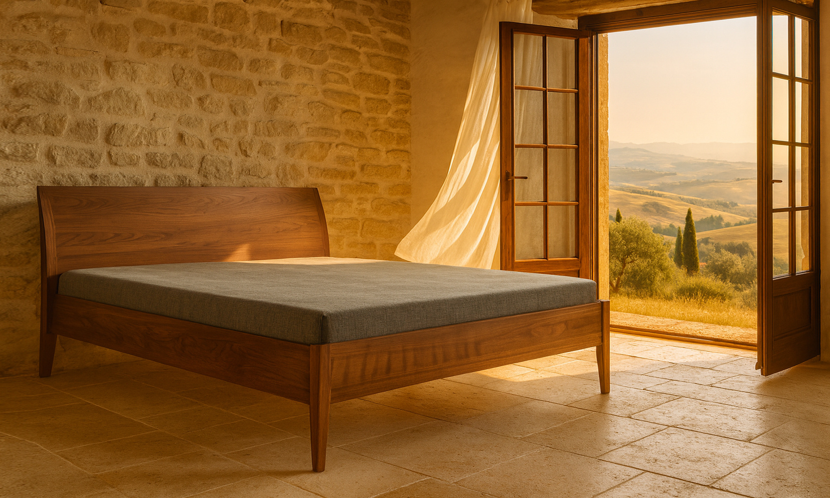 - Typ: Massivholzbett mit Kopfteil (Rückenlehne)
