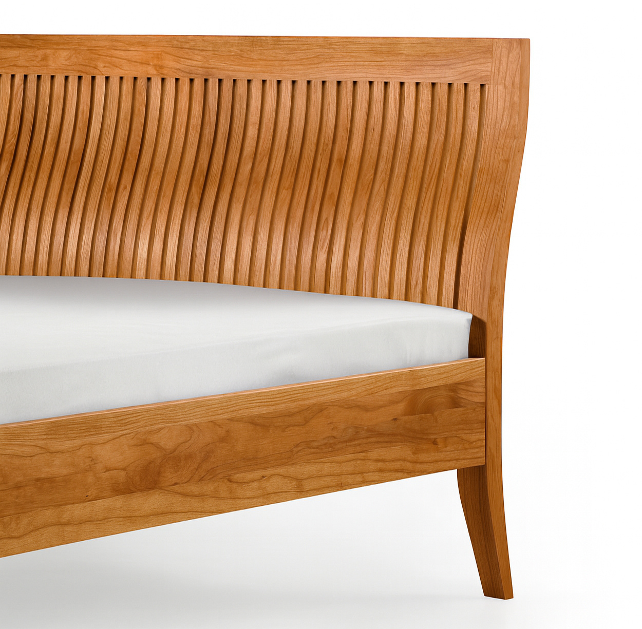 Das Massivholzbett VENTANAfino 21 fertigen wir zu 100% in Deutschland, in unserer Manufaktur bei Coburg (Franken), wo seit mehr als 200 Jahren in langer Familientradition mit dem faszinierenden Natur-Werkstoff Massivholz gearbeitet wird. Das Bett gehört aufgrund seiner äußerst aufwendigen Bauweise zur Premiumklasse der Massivholzbetten aus der TRAUMWERK-Kollektion. Die besondere Form des Kopfteils in Verbindung mit den feinen und eng gesetzten Sprossen der Rückenlehne verleihen dem Bett eine Eleganz, die ihresgleichen sucht.