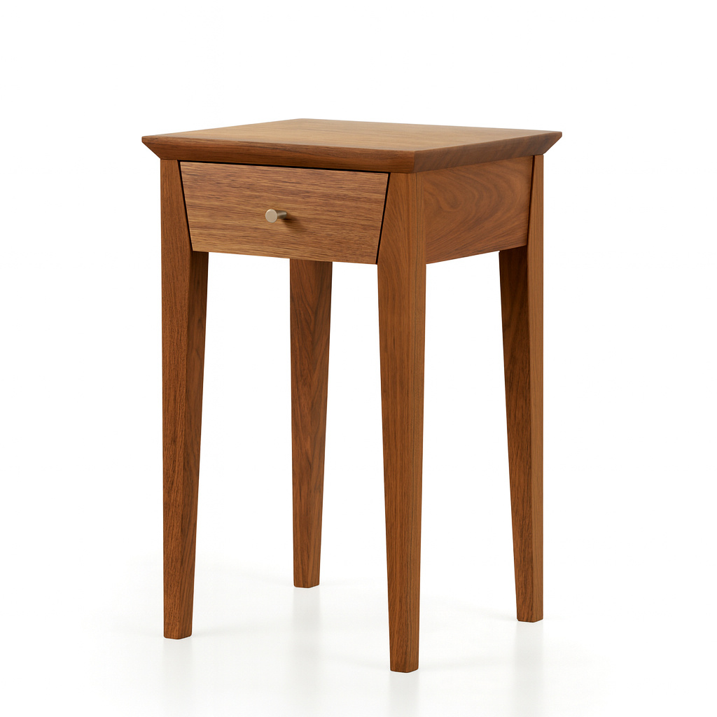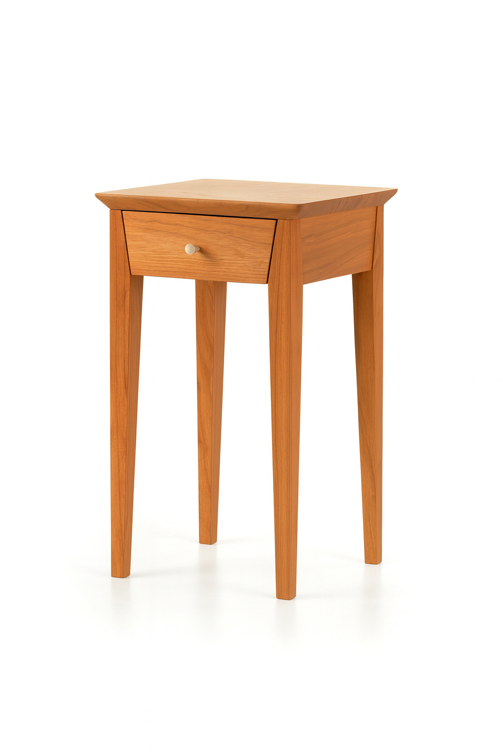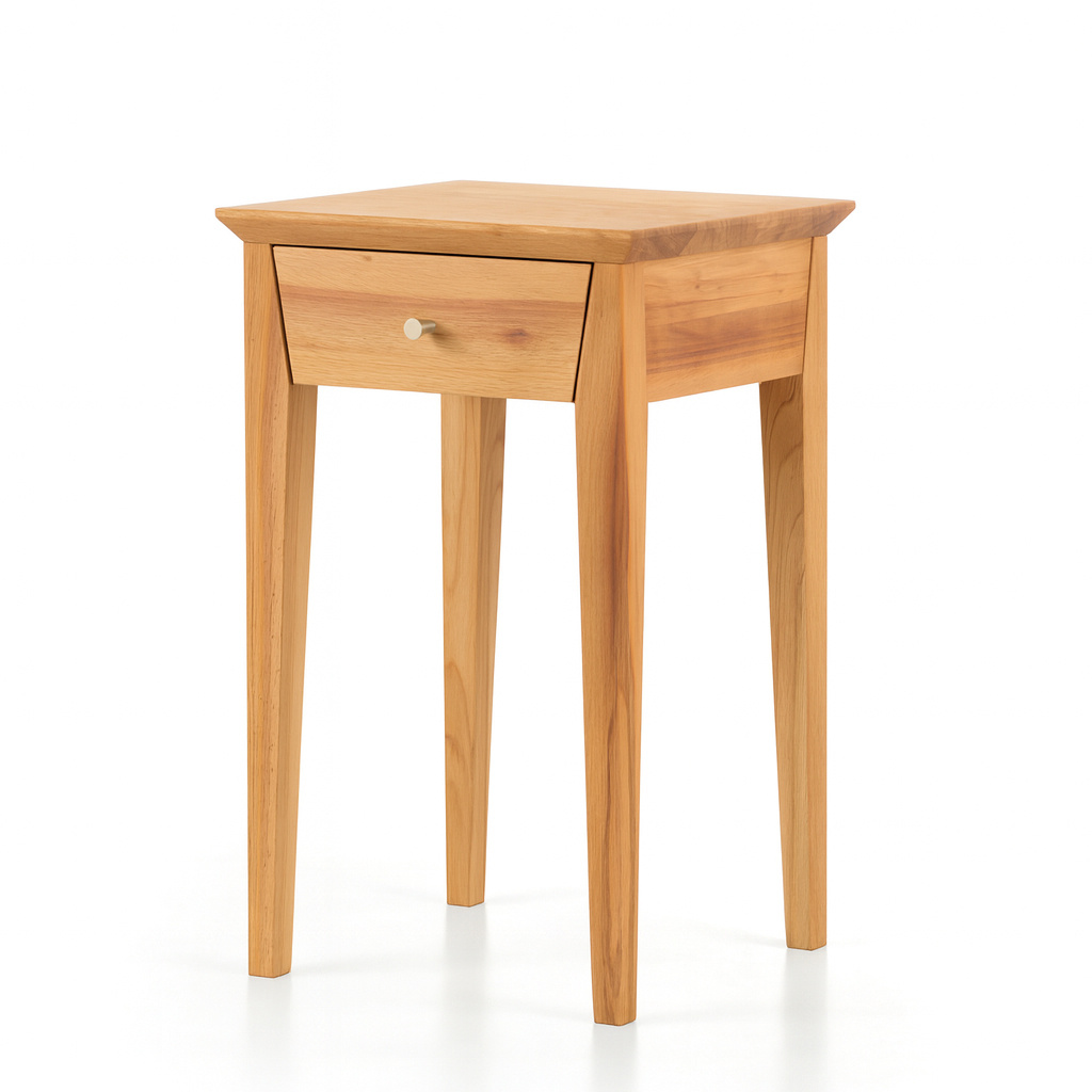Der Nachttisch XANADU wird in den Holzarten Buche, Kernbuche, Eiche, Amerikan. Kirschbaum und Amerikan. Nussbaum gefertigt. Die seitlichen Führungszargen den Schubkästchens sowie die Hinterzarge werden immer aus Buchenholz gefertigt, der Kastenboden aus Furnierplatte.