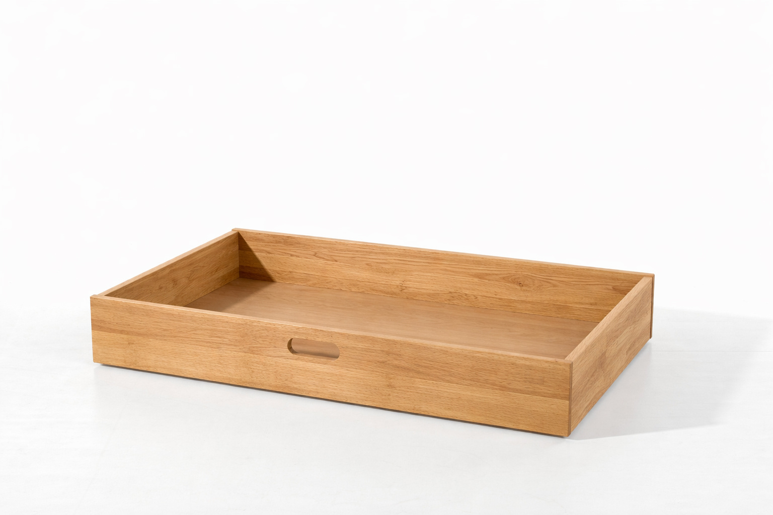 Unseren Bettkasten fertigen wir in den Holzarten Buche, Kernbuche, Eiche, Amerikan. Kirschbaum und Amerikan. Nussbaum.